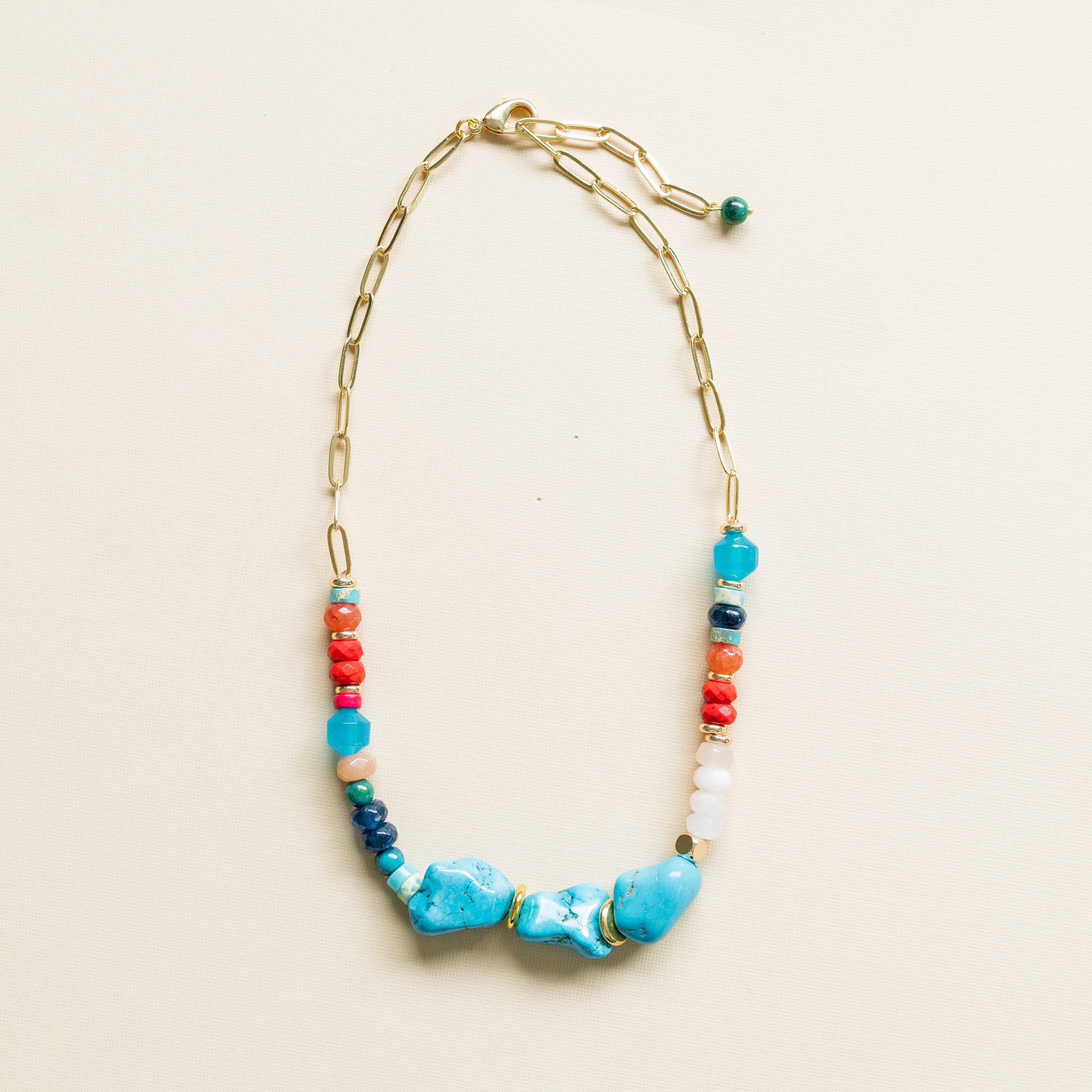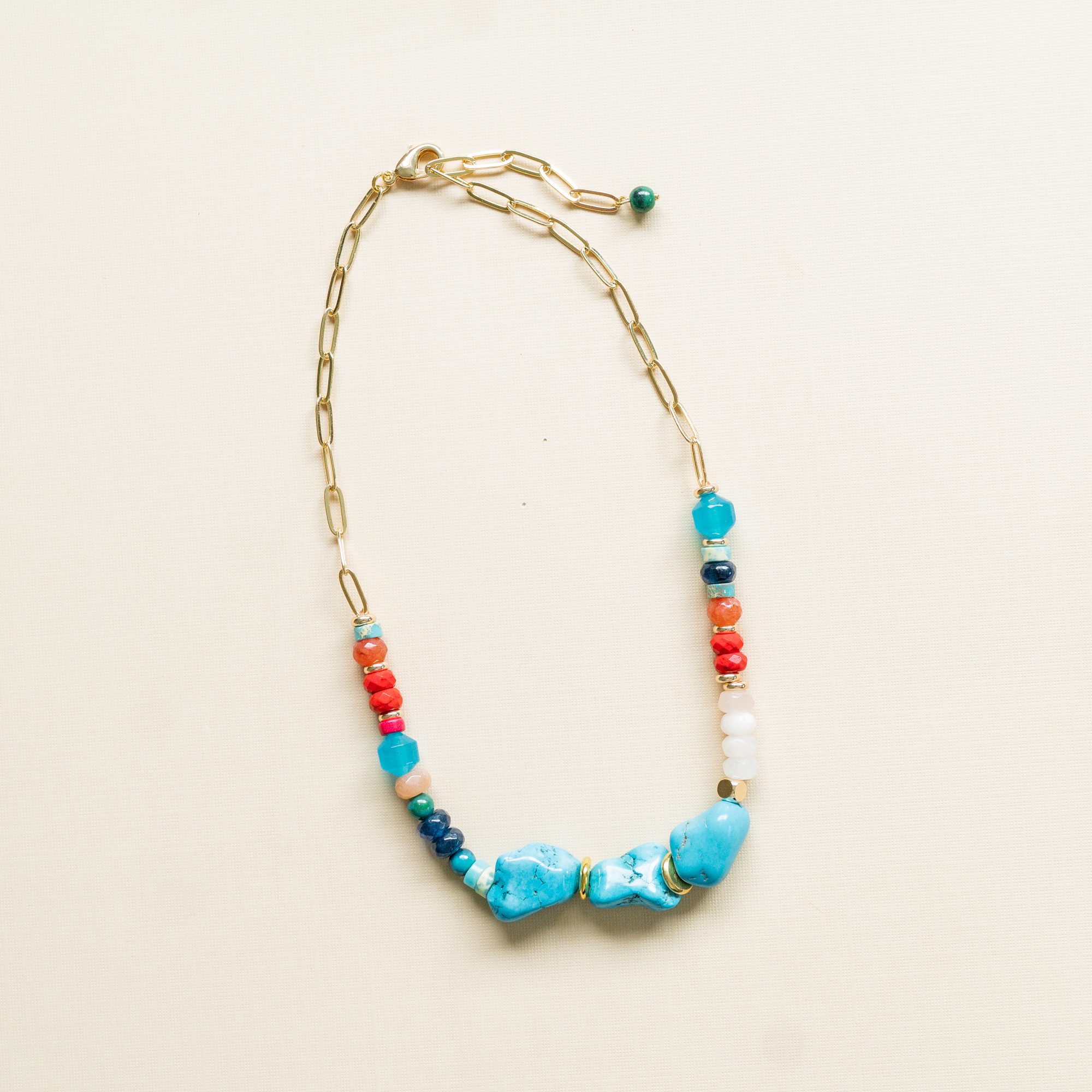 Add some flair to your style with our Bali Turquoise Nugget Necklace. This stunning necklace is sure to be the perfect accent to countless outfits this season.